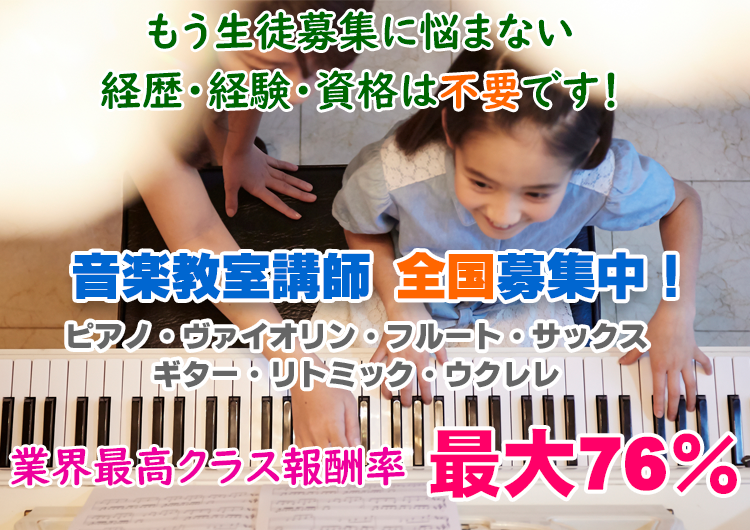 業界最高クラスの報酬率とコンサルタント協会ですでに実績を積み上げてきた生徒募集力で全国から先生を募集。もちろん目指すは教室数日本一!打倒ヤ◯◯音楽教室!(笑)